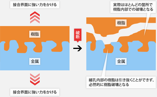 そのため、樹脂もしくは金属が劣化するまで接合が劣化しません。