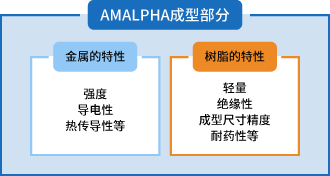 AMALPHA是我公司独自研发的直接接合金属和树脂的金属表面处理技术。通过在树脂与金属的界面上相互接合,制造出树脂与金属一体成型的部件。